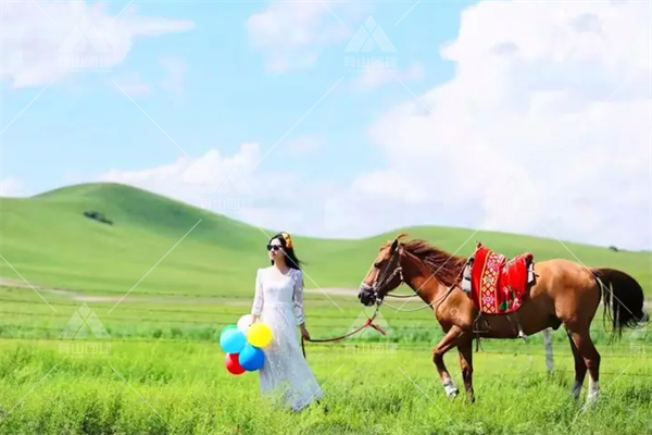 在草原上骑马,可以真正体验到草原上的美好,吹过的风都是文化,踩的地全是历史,沿着固定的路线在无垠的草原上策马奔腾。