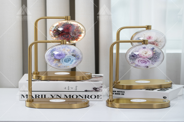 清新的永生花玫瑰,依偎在柔软的绣球上色彩令人清爽舒适,十分搭调,她散发淡淡玫瑰花香,安逸而宁静,大口吸嗅香气宛如将鼻子凑近一把玫瑰般真实。
